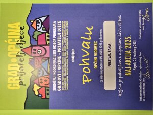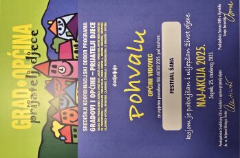 Pohvalu je u ime Koordinacijskog odbora Općina Vidovec-prijatelj djece primila Maja Herceg, članica Koordinacijskog odbora i vijećnica u Općinskom vijeću Općine Vidovec.